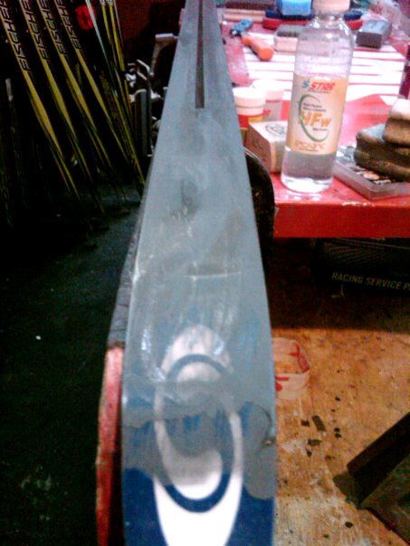 | The boxes for the team sprint. Between each leg of the relay, the athletes would rush over to have us remake their skis. |